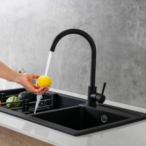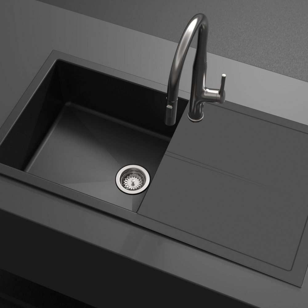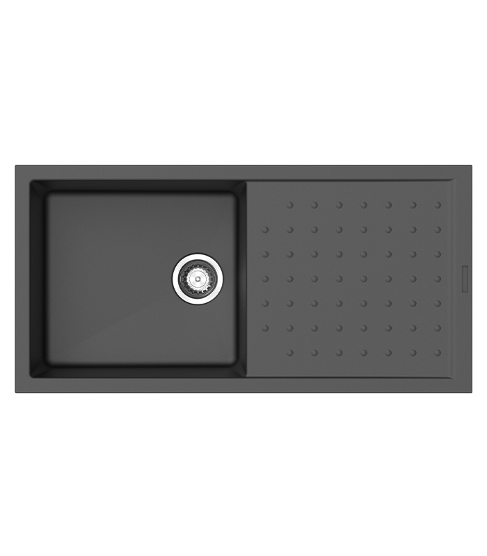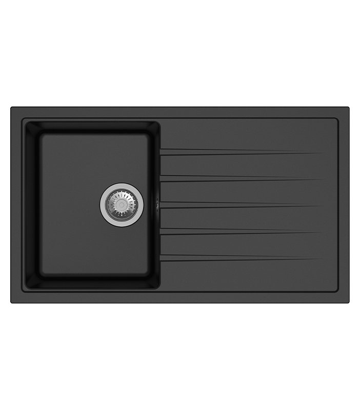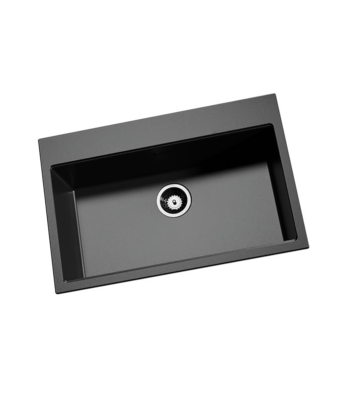 Setzen Sie Akzente in Ihrer Küche mit der Granitspüle Polo Black, die durch ihr elegantes Design und ihre hochwertigen Funktionen besticht und ideal in Unterschränke ab 60 cm passt, während sie durch ihre Reversibilität, Langlebigkeit und praktische Zusatzfeatures wie ein Cover und einen Pushup Excenter überzeugt.
