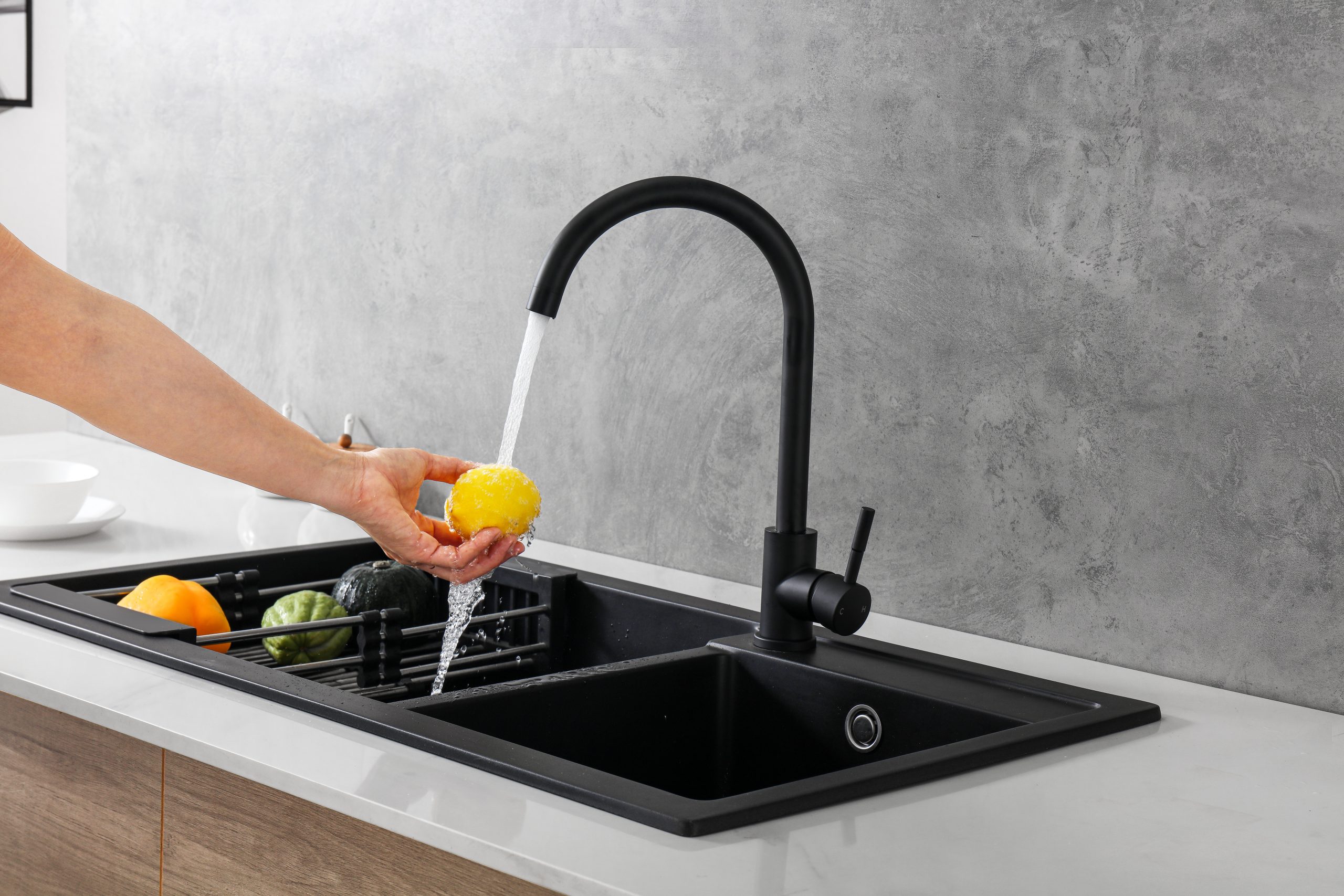 Einmal um die Kurve ! die perfekte Kombination aus modernem Design und funktionaler Eleganz für Ihre Küche. Mit ihren stilvollen Aussehen fügt sich die Curved Mischbatterie harmonisch in jedes Ambiente ein und wird zum echten Hingucker in Ihrem Zuhause. Wählen Sie zwischen den edlen Oberflächen in Black Matt, die einen kraftvollen, zeitgemäßen Look bieten, oder Satin, das eine subtile, elegante Note verleiht. Beide Farbvarianten sind ideal auf die neuesten Einrichtungstrends abgestimmt und sorgen für ein zeitloses Flair. Hergestellt aus hochwertigen Materialien, garantiert unsere Mischbatterie nicht nur eine ansprechende Optik, sondern auch Langlebigkeit und Zuverlässigkeit im täglichen Einsatz. Setzen Sie auf Stil und Funktionalität mit der Curved Mischbatterie – Ihrem perfekten Partner für ein modernes Zuhause. Jetzt entdecken und erleben, wie Design und Funktionalität eine perfekte Symbiose eingehen!