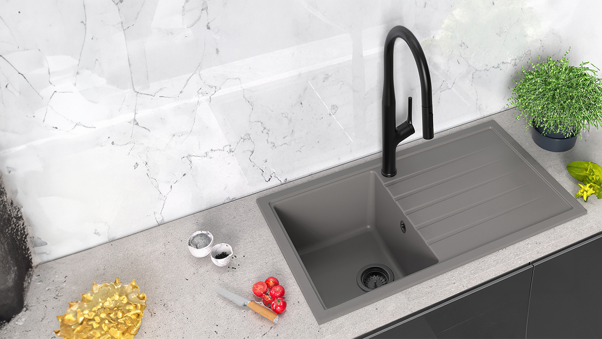 Die Granitspüle Mailand XM überzeugt durch ihre vielseitigen Eigenschaften: Sie ist reversibel und bietet somit flexible Gestaltungsmöglichkeiten. Hergestellt aus hochwertigem Quarz-Komposit, garantiert sie eine Langlebigkeit, die auch den intensivsten Anforderungen standhält. Zudem ist sie lebensmittelecht, geruchsneutral und hitzebeständig – ideal für alle Kochbedürfnisse. Mit einer großzügigen 5-Jahres-Garantie können Sie sich auf die Qualität und Zuverlässigkeit unseres Produkts verlassen.